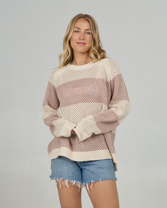• Striped open knit sweater with raglan sleeves